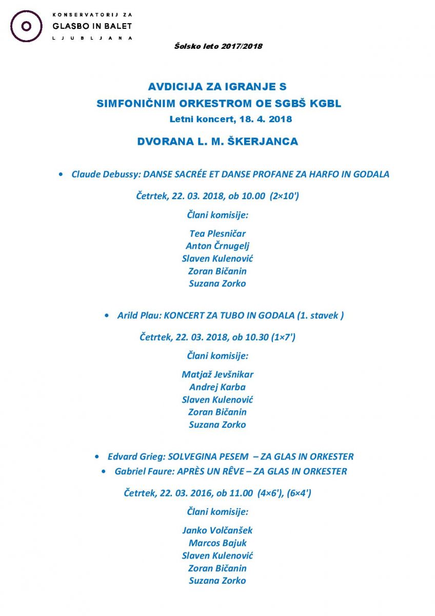 Avdicija za igranje s Simfoničnim orkestrom KGBL