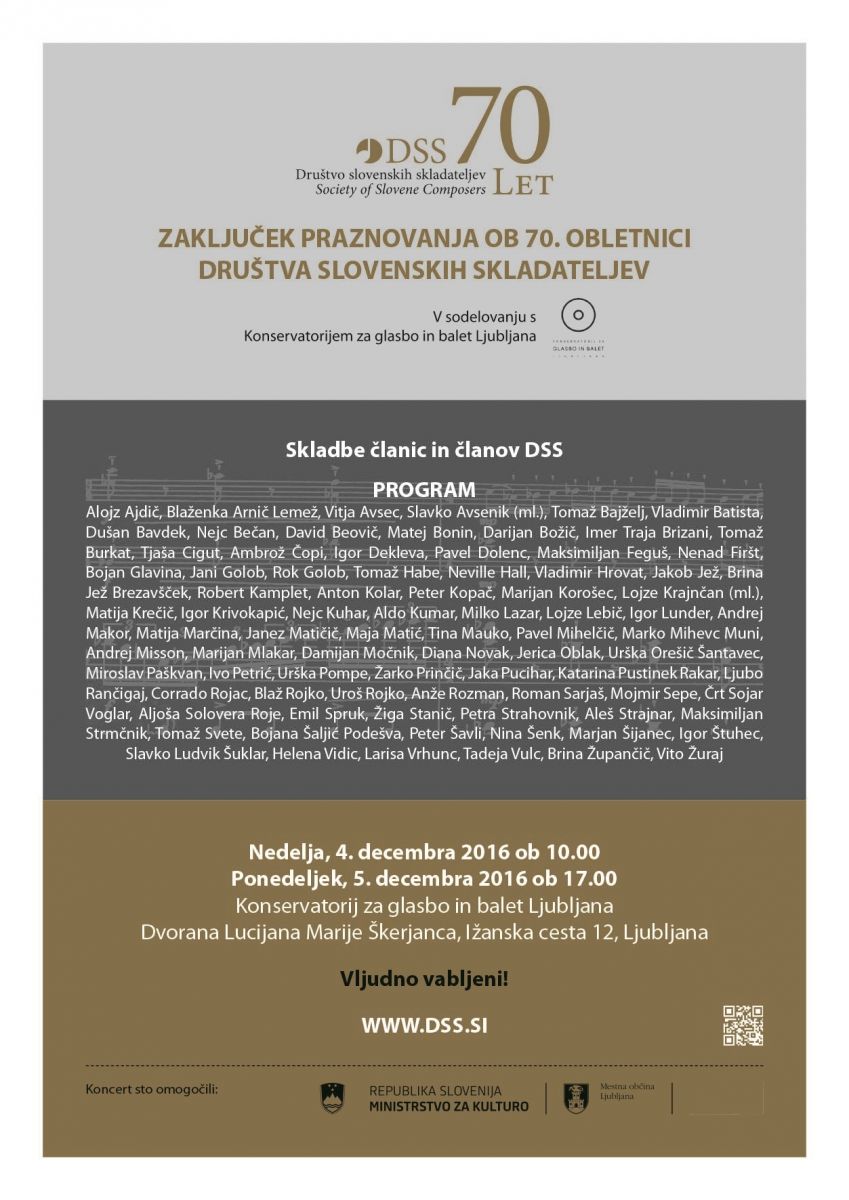 Vljudno vabljeni na zaključek praznovanja ob 70. obletnici Društva slovenskih skladateljev.