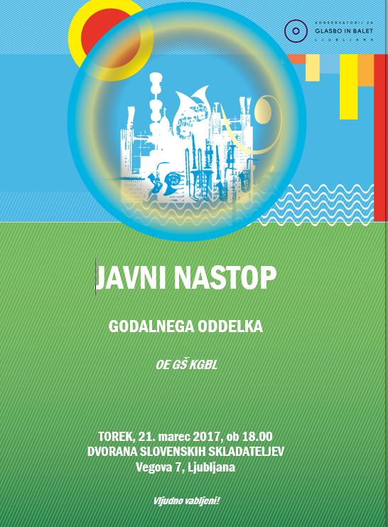 Vljudno vabljeni na javni nastop godalnega oddelka OE GŠ Konservatorija za glasbo in balet Ljubljana.