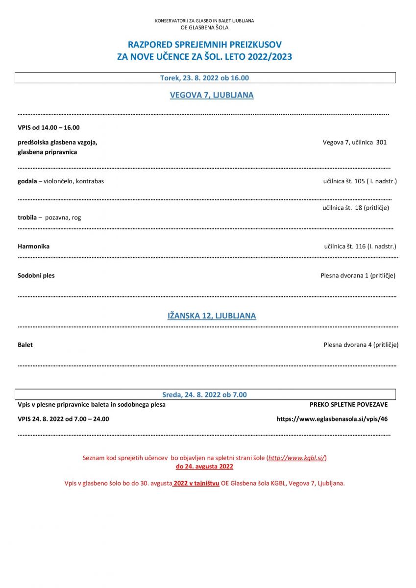 OE Glasbena šola - preizkusi nadarjenosti